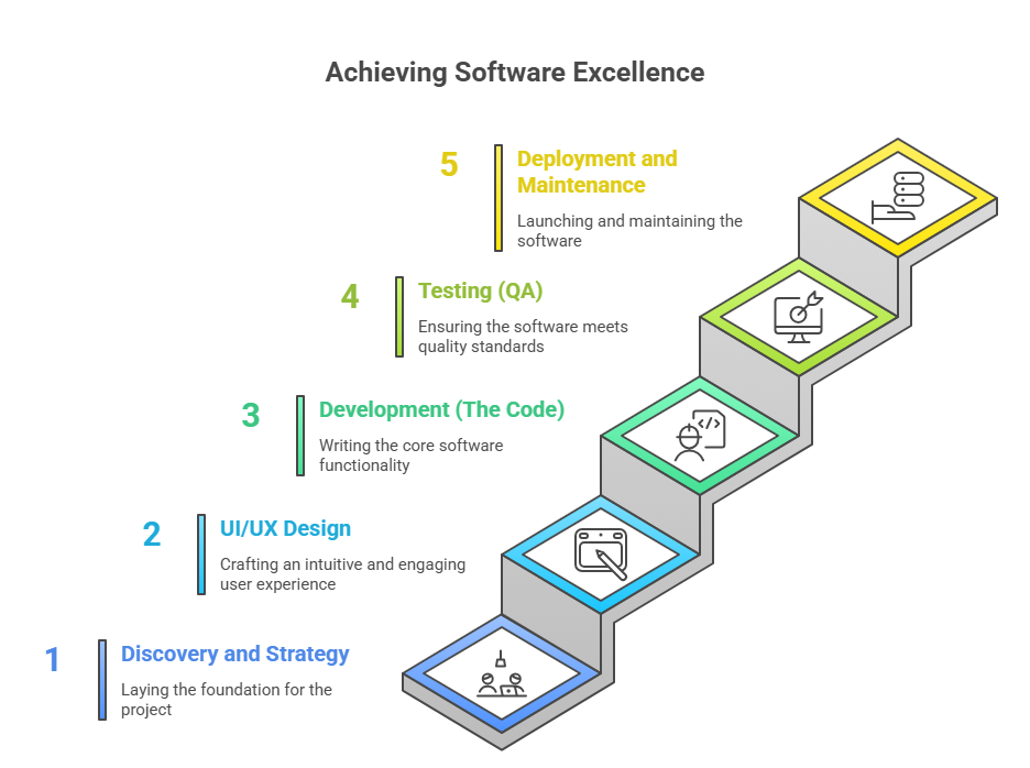- Lifecycle Essentials: Successful apps require a rigorous process: discovery, UI/UX design, coding, testing, and post-launch maintenance.